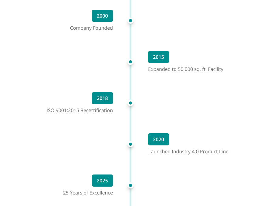 25 years of engineering excellence, innovation, and customer satisfaction in industrial machinery manufacturing.